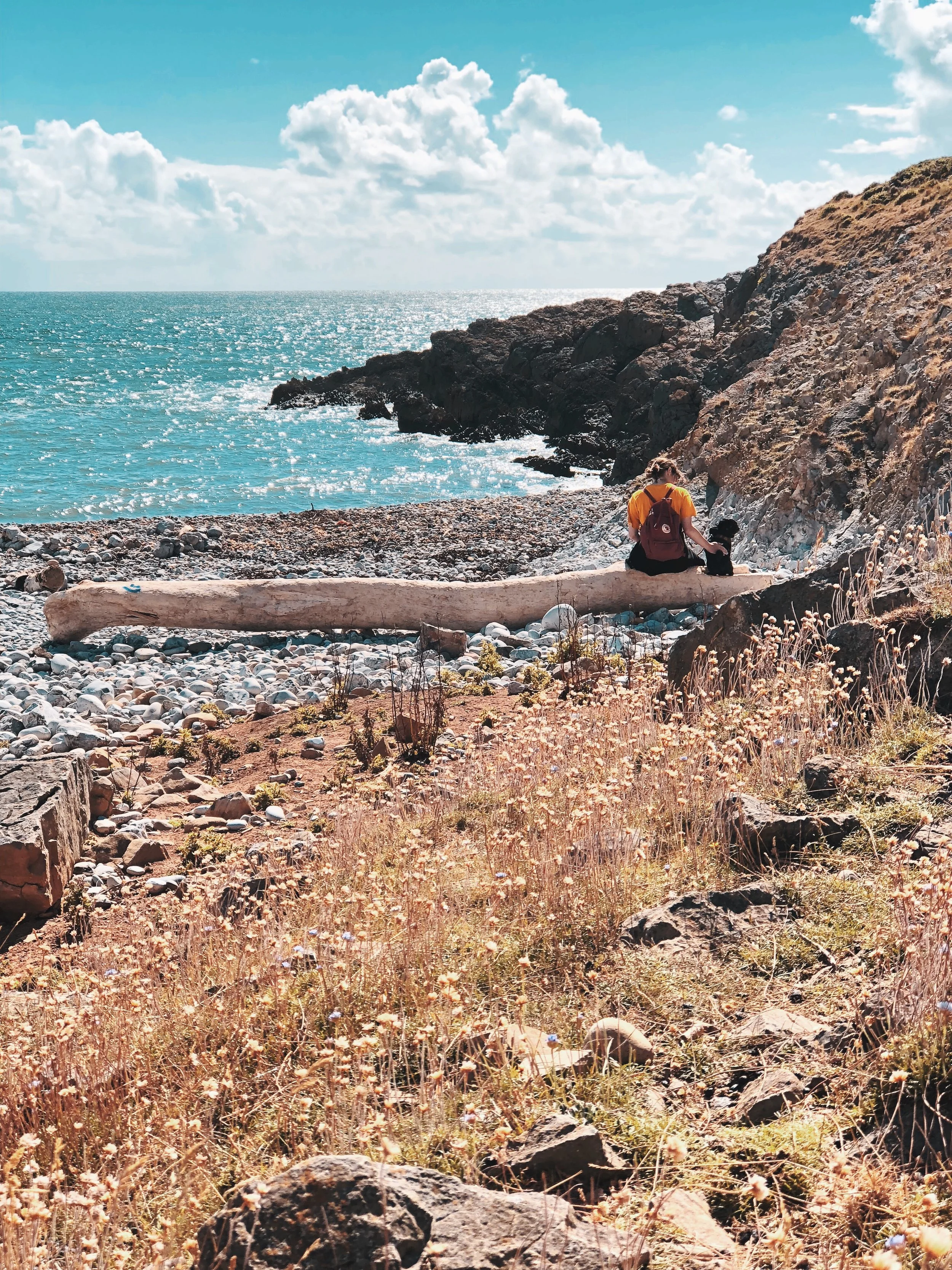 After we'd set up we took a walk from the campsite. The site had way-marked a route through their own farmland to a hidden cove on the south of the Gower Peninsula called Ramsgrove Cove. We walked across their fields and down towards the sea, Crossing the coast path we continued down the steps into a pebble beach with steep cliff sides. The gulls flocked above us and we could hear the waves crashing against the rock. The beach was littered with driftwood and smooth pebbles. It was unfortunately littered with plastic and rubbish in place which was heartbreaking to see, and shattered the illusion that the place was our own. We explored the rock pools and followed the cliffs around the the East where we sat and looked across to North Devon, across the Bristol Channel. We returned to the campsite for dinner. At night the stars and the milky way could be seen. The night sky was so visible including Mars. We felt so lucky.